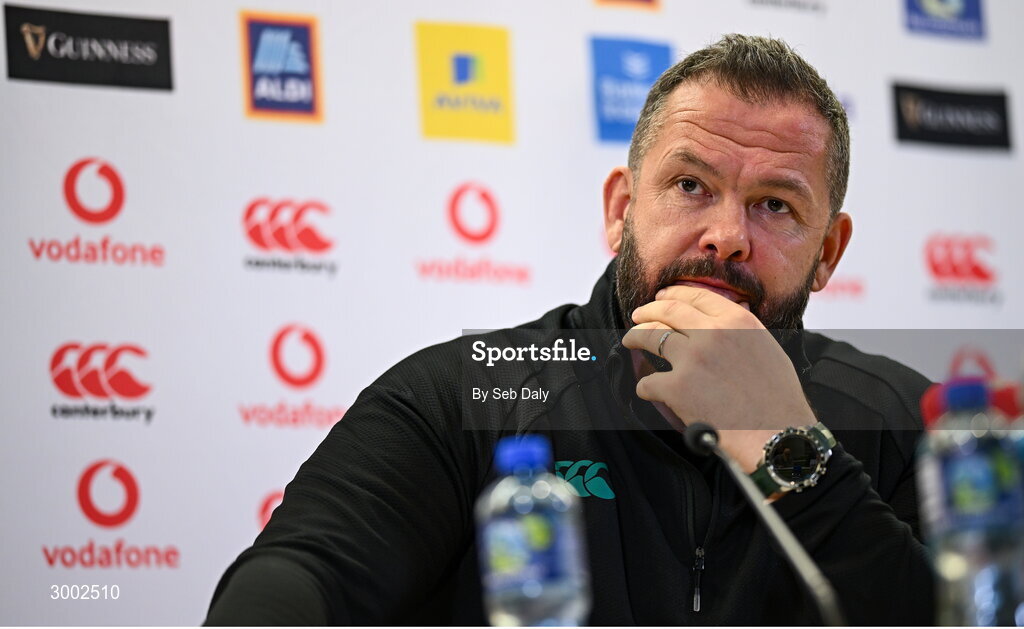 28 November 2024; Head coach Andy Farrell during an Ireland Rugby media conference at the Aviva Stadium in Dublin. Photo by Seb Daly/Sportsfile