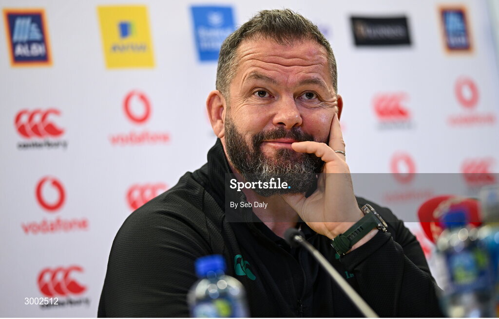28 November 2024; Head coach Andy Farrell during an Ireland Rugby media conference at the Aviva Stadium in Dublin. Photo by Seb Daly/Sportsfile