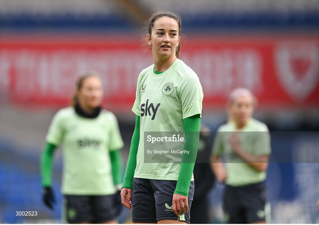 28 November 2024; Anna Patten during a Republic of Ireland women training session at Cardiff City Stadium in Wales. Photo by Stephen McCarthy/Sportsfile