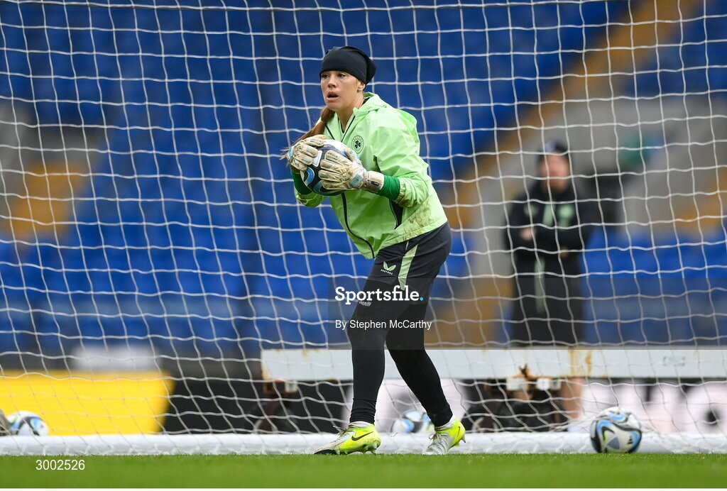 28 November 2024; Goalkeeper Grace Moloney during a Republic of Ireland women training session at Cardiff City Stadium in Wales. Photo by Stephen McCarthy/Sportsfile