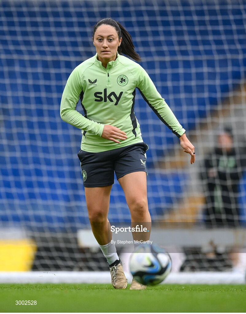 28 November 2024; Megan Campbell during a Republic of Ireland women training session at Cardiff City Stadium in Wales. Photo by Stephen McCarthy/Sportsfile
