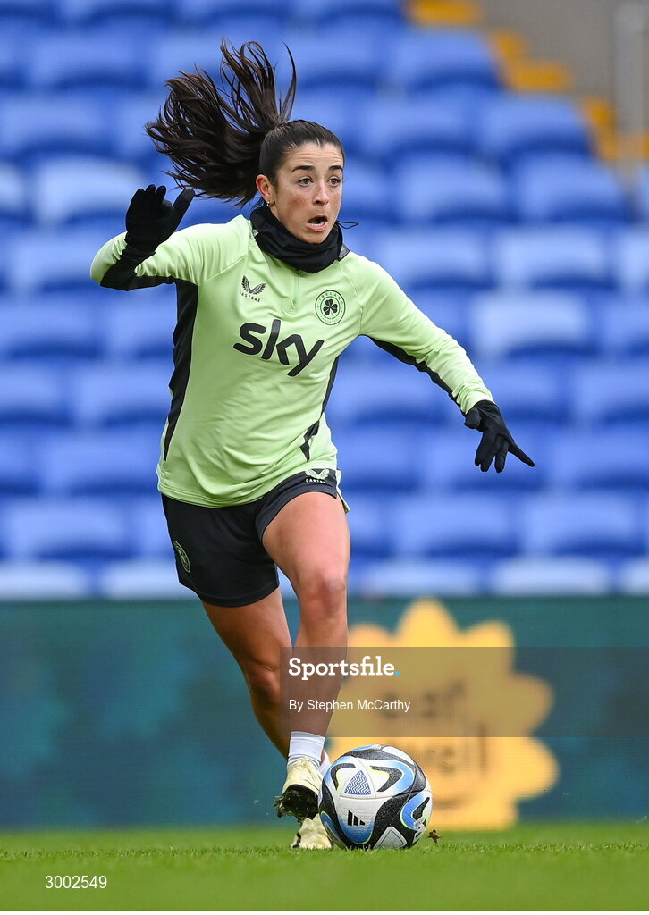 28 November 2024; Marissa Sheva during a Republic of Ireland women training session at Cardiff City Stadium in Wales. Photo by Stephen McCarthy/Sportsfile