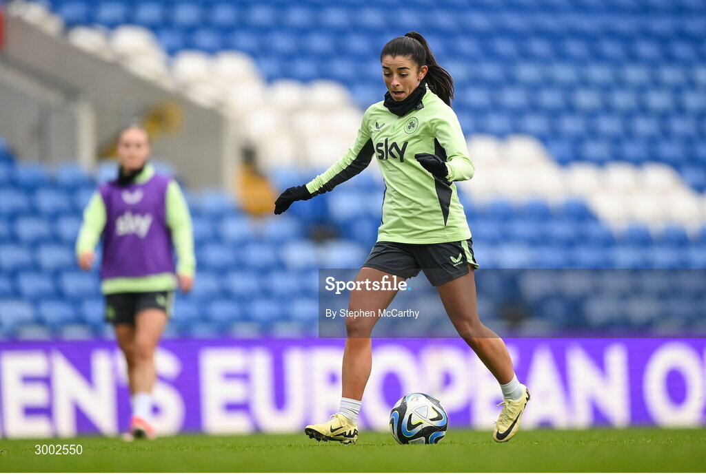 28 November 2024; Marissa Sheva during a Republic of Ireland women training session at Cardiff City Stadium in Wales. Photo by Stephen McCarthy/Sportsfile