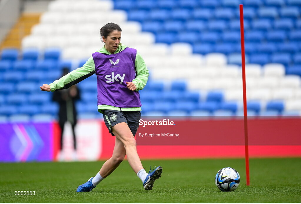 28 November 2024; Niamh Fahey during a Republic of Ireland women training session at Cardiff City Stadium in Wales. Photo by Stephen McCarthy/Sportsfile