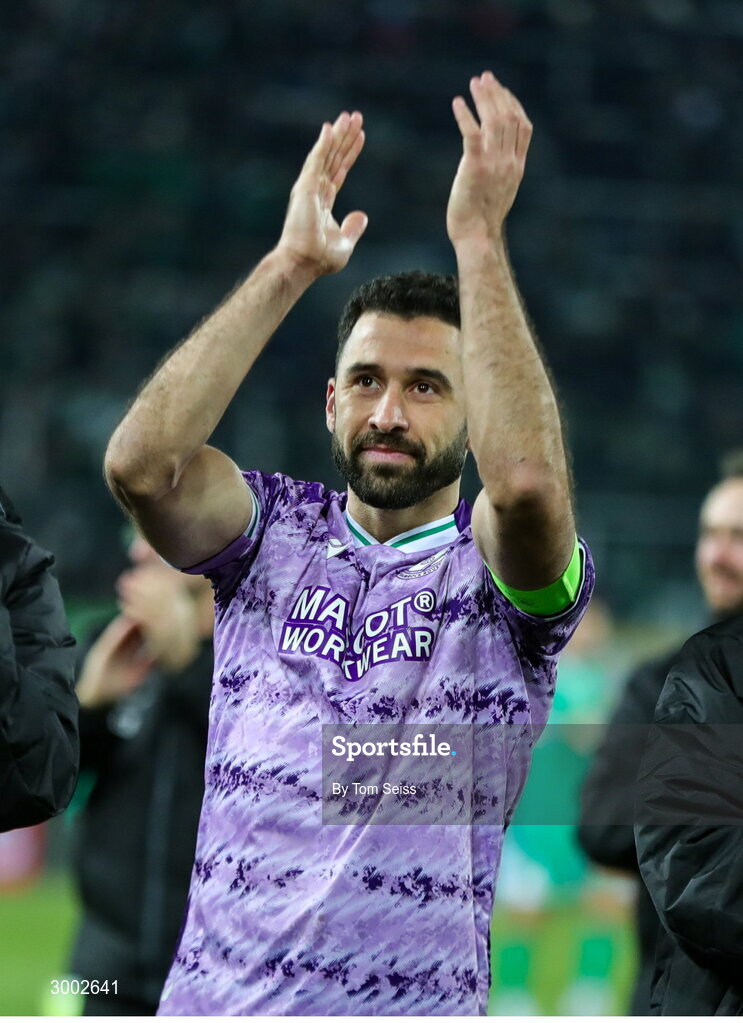 28 November 2024; Roberto Lopes of Shamrock Rovers celebrates after the UEFA Conference League 2024/25 league phase match between SK Rapid and Shamrock Rovers at the Allianz Stadion in Vienna, Austria. Photo by Tom Seiss/Sportsfile