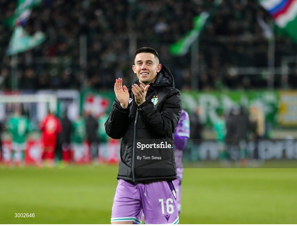 28 November 2024; Gary O'Neill of Shamrock Rovers celebrates after the UEFA Conference League 2024/25 league phase match between SK Rapid and Shamrock Rovers at the Allianz Stadion in Vienna, Austria. Photo by Tom Seiss/Sportsfile