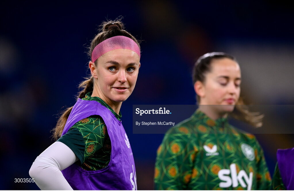 29 November 2024; Caitlin Hayes of Republic of Ireland before the UEFA Women's EURO 2025 Play-off Round Two first leg match between Wales and Republic of Ireland at Cardiff City Stadium in Wales. Photo by Stephen McCarthy/Sportsfile