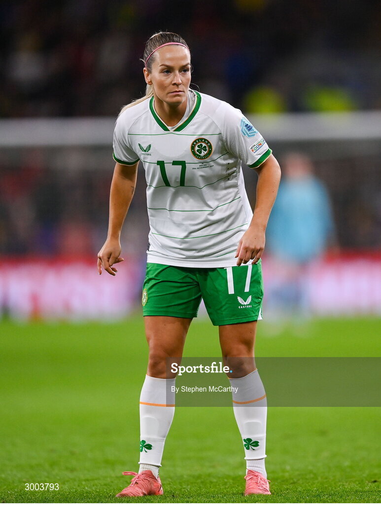 29 November 2024; Lily Agg of Republic of Ireland during the UEFA Women's EURO 2025 Play-off Round Two first leg match between Wales and Republic of Ireland at Cardiff City Stadium in Wales. Photo by Stephen McCarthy/Sportsfile