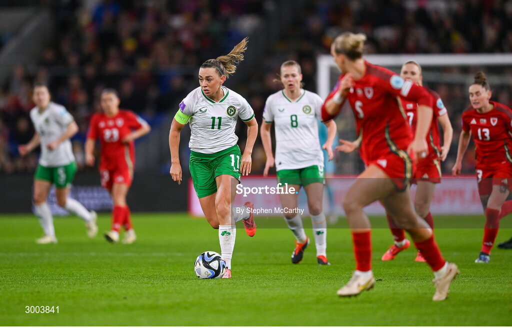 29 November 2024; Katie McCabe of Republic of Ireland during the UEFA Women's EURO 2025 Play-off Round Two first leg match between Wales and Republic of Ireland at Cardiff City Stadium in Wales. Photo by Stephen McCarthy/Sportsfile