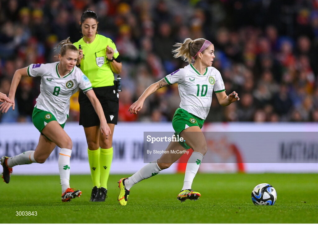 29 November 2024; Denise O'Sullivan of Republic of Ireland during the UEFA Women's EURO 2025 Play-off Round Two first leg match between Wales and Republic of Ireland at Cardiff City Stadium in Wales. Photo by Stephen McCarthy/Sportsfile