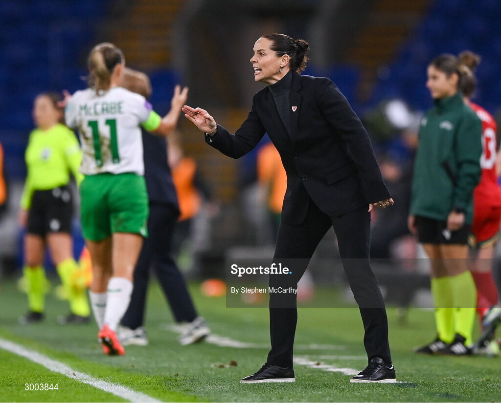 29 November 2024; Wales head coach Rhian Wilkinson during the UEFA Women's EURO 2025 Play-off Round Two first leg match between Wales and Republic of Ireland at Cardiff City Stadium in Wales. Photo by Stephen McCarthy/Sportsfile