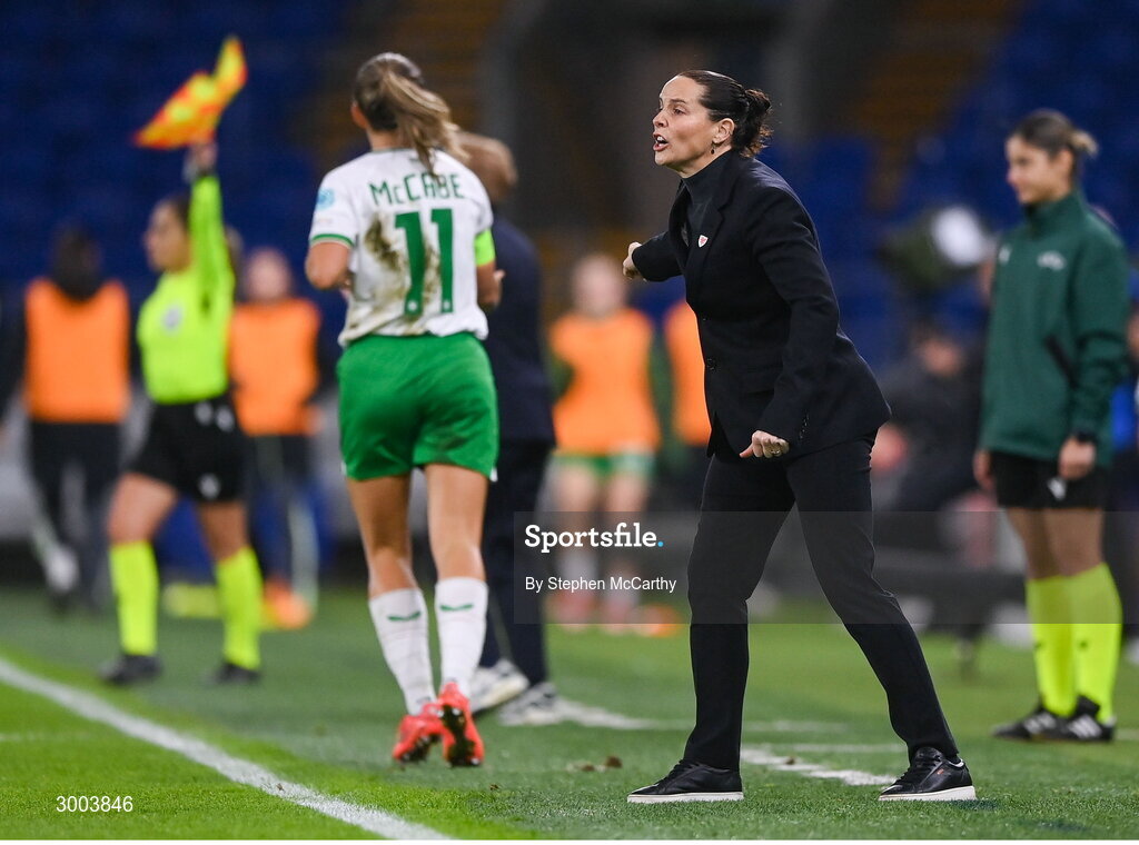 29 November 2024; Wales head coach Rhian Wilkinson during the UEFA Women's EURO 2025 Play-off Round Two first leg match between Wales and Republic of Ireland at Cardiff City Stadium in Wales. Photo by Stephen McCarthy/Sportsfile
