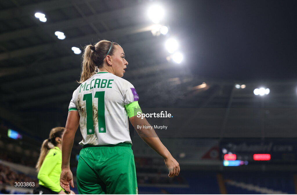 29 November 2024; Katie McCabe of Republic of Ireland during the UEFA Women's EURO 2025 Play-off Round Two first leg match between Wales and Republic of Ireland at Cardiff City Stadium in Wales. Photo by Harry Murphy/Sportsfile