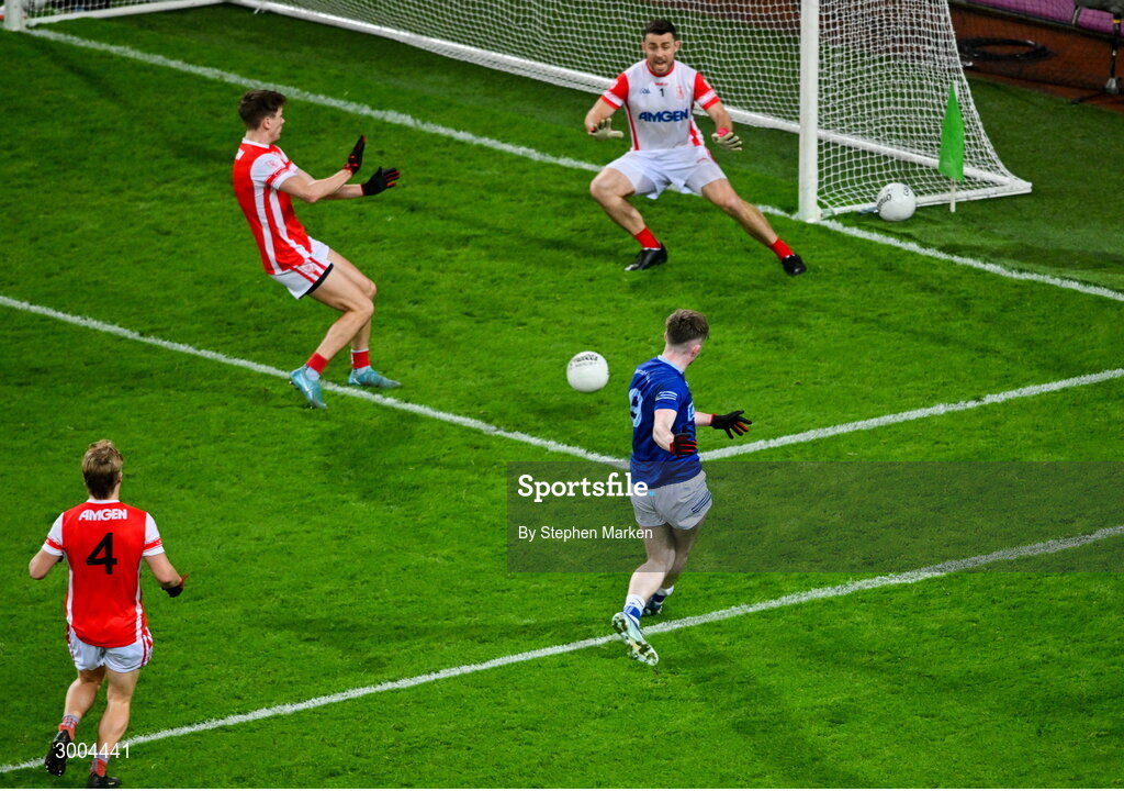 30 November 2024; Seán Callaghan of Ardee St Mary's scores his side's second goal during the AIB Leinster GAA Senior Club Football Championship final match between Cuala of Dublin and Ardee St Mary's of Louth at Croke Park in Dublin. Photo by Stephen Marken/Sportsfile