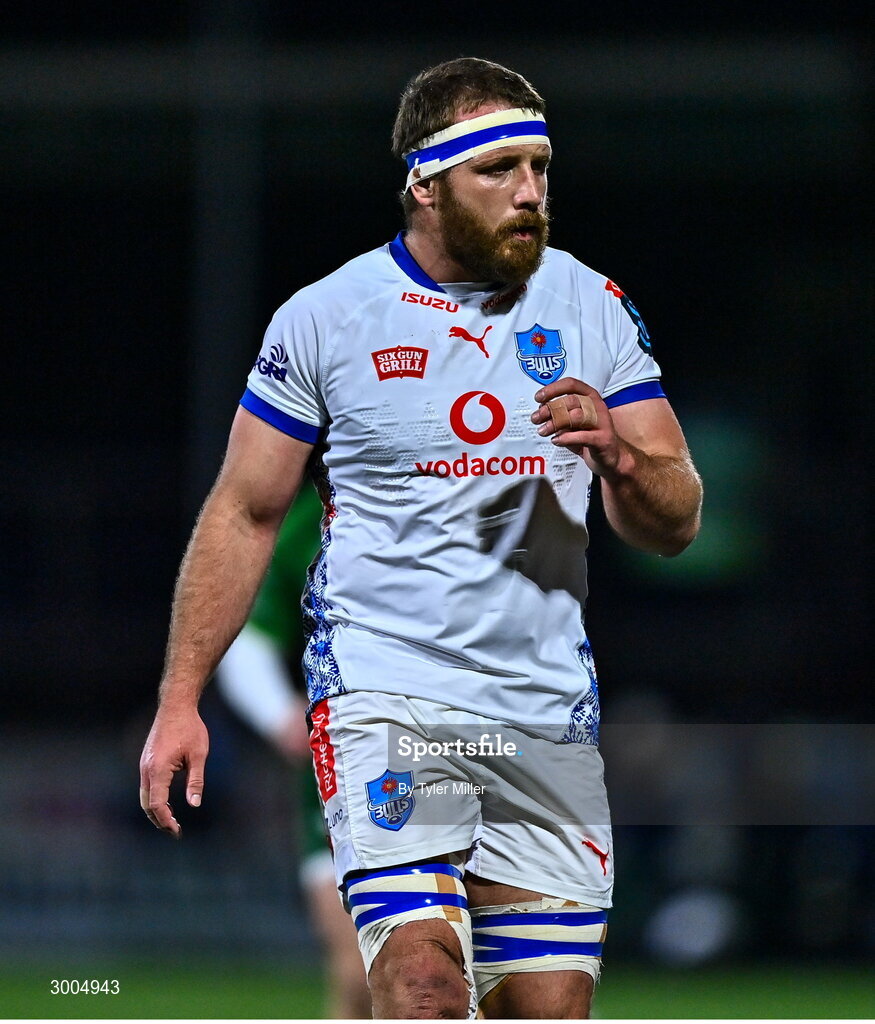 30 November 2024; Gerhard Steenekamp of Vodacom Bulls during the United Rugby Championship match between Connacht and Vodacom Bulls at Dexcom Stadium in Galway. Photo by Tyler Miller/Sportsfile