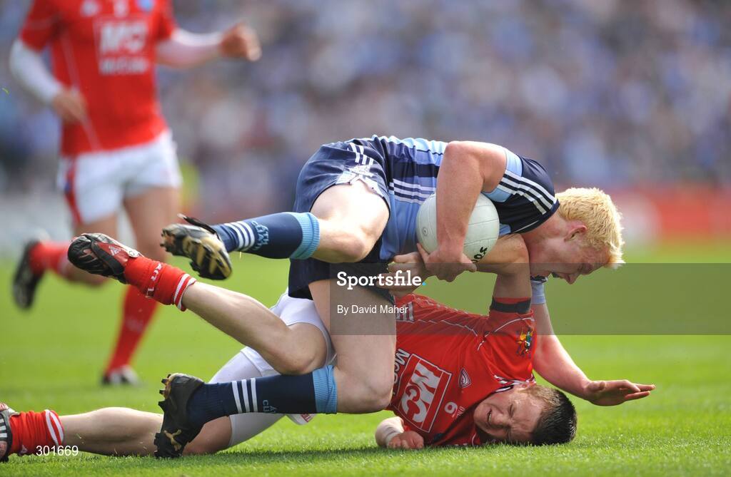 8 June 2008; Mark Vaughan, Dublin, in action against Conor McGuinness, Louth. GAA Football Leinster Senior Championship Quarter-Final, Louth v Dublin, Croke Park, Dublin. Picture credit: David Maher / SPORTSFILE