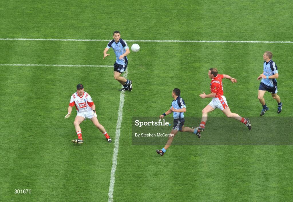 8 June 2008; Alan Brogan, Dublin, receives a pass from team-mate Jason Sherlock on his way to scoring his side's goal past Louth goalkeeper Stuart Reynolds. GAA Football Leinster Senior Championship Quarter-Final, Louth v Dublin, Croke Park, Dublin. Picture credit: Stephen McCarthy / SPORTSFILE