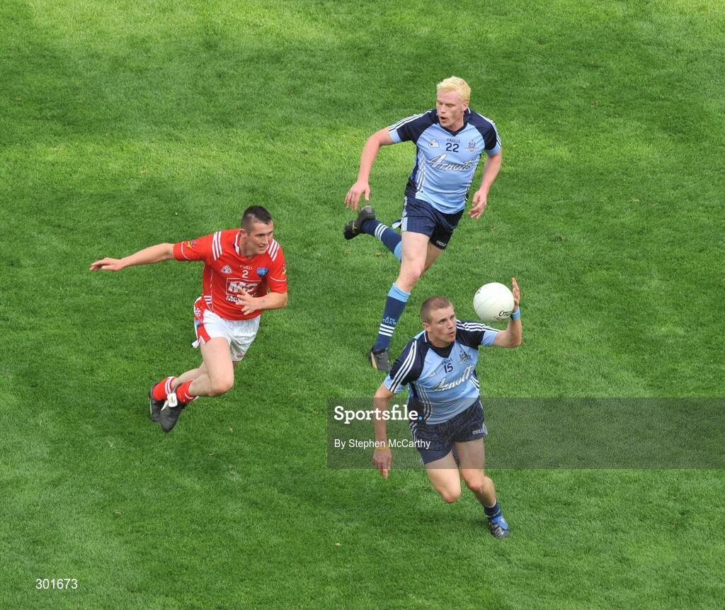 8 June 2008; Tomas Quinn and Mark Vaughan, 22, Dublin, in action against Des Finnegan, Louth. GAA Football Leinster Senior Championship Quarter-Final, Louth v Dublin, Croke Park, Dublin. Picture credit: Stephen McCarthy / SPORTSFILE