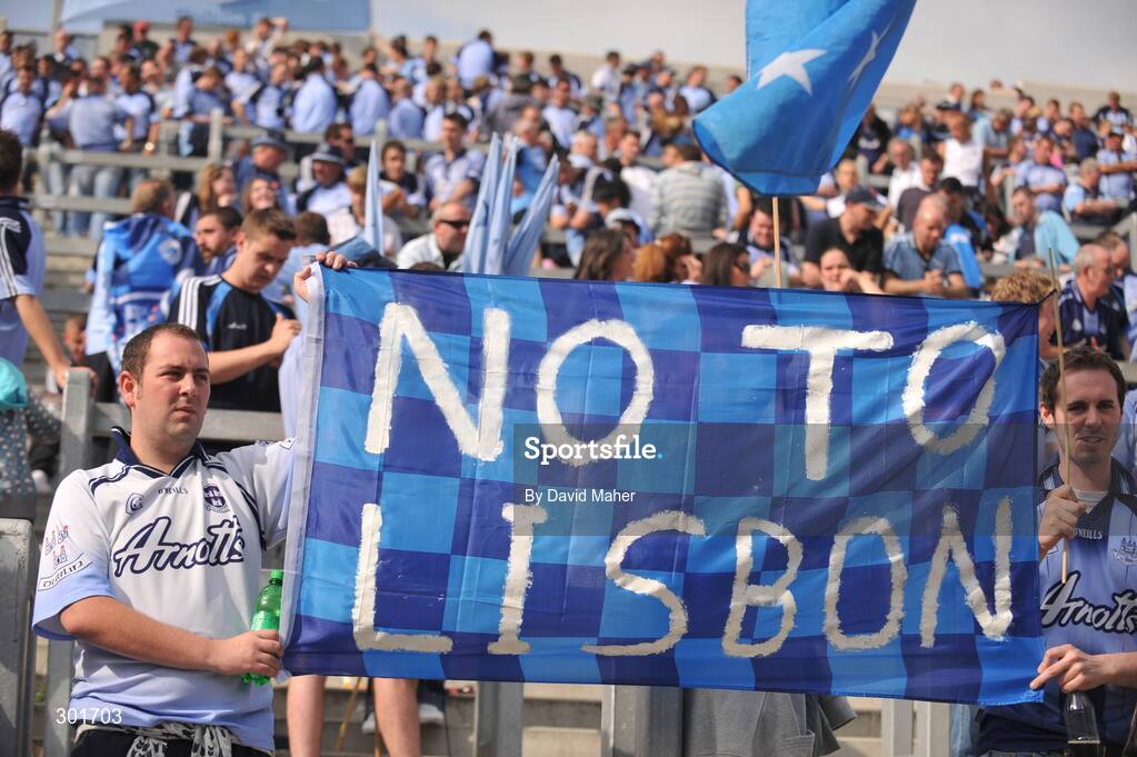 8 June 2008; Dublin supporters hold a banner at the end of the game. GAA Football Leinster Senior Championship Quarter-Final, Louth v Dublin, Croke Park, Dublin. Picture credit: David Maher / SPORTSFILE