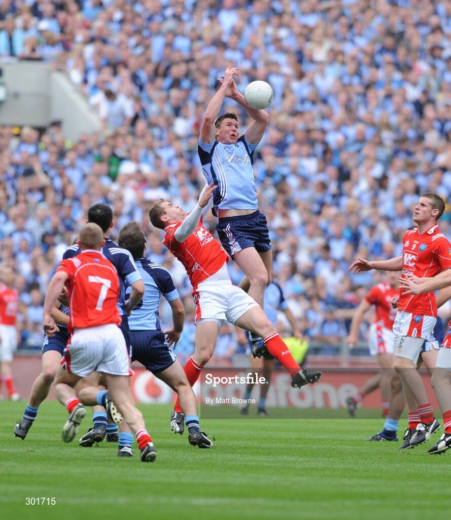 8 June 2008; Éamon Fennell, Dublin, in action against Paddy Keenan, Louth. GAA Football Leinster Senior Championship Quarter-Final, Louth v Dublin, Croke Park, Dublin. Picture credit: Matt Browne / SPORTSFILE