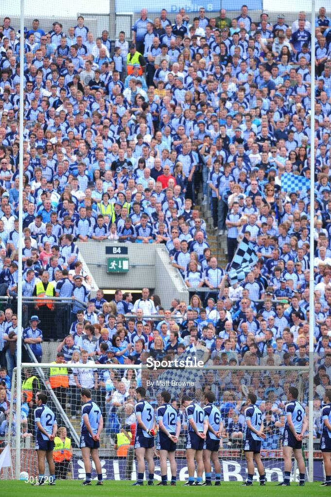 8 June 2008; Dublin players stand for the National Anthem in front of Hill 16. GAA Football Leinster Senior Championship Quarter-Final, Louth v Dublin, Croke Park, Dublin. Picture credit: Matt Browne / SPORTSFILE