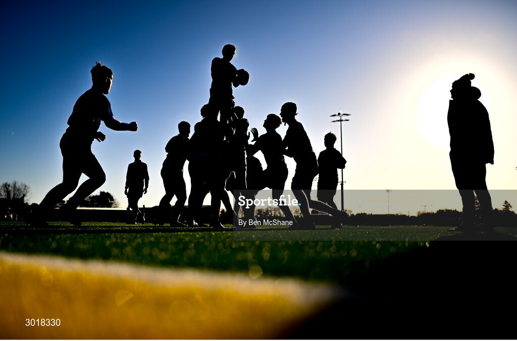 2 January 2025; North Midlands players practice their line-outs before the BearingPoint Shane Horgan Cup Round 3 match between South East and North Midlands at Shay Murtagh Park in Mullingar, Westmeath. Photo by Ben McShane/Sportsfile