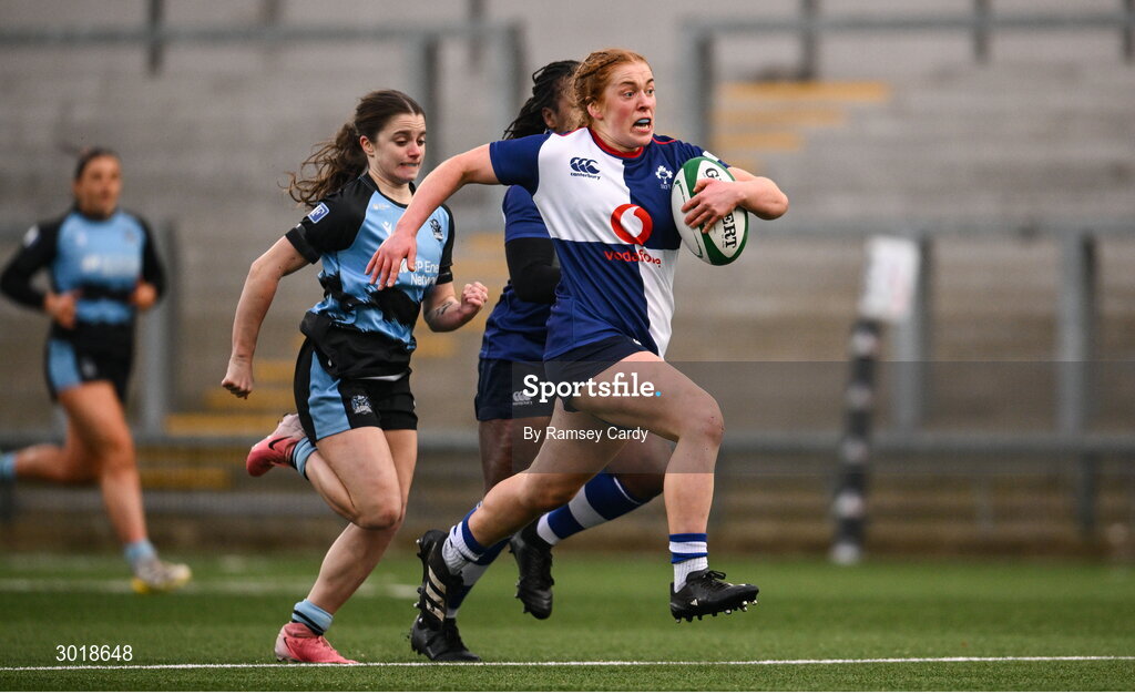4 January 2025; Niamh O’Dowd of Wolfhounds during the Celtic Challenge match between Wolfhounds and Glasgow Warriors at Kingspan Stadium in Belfast. Photo by Ramsey Cardy/Sportsfile
