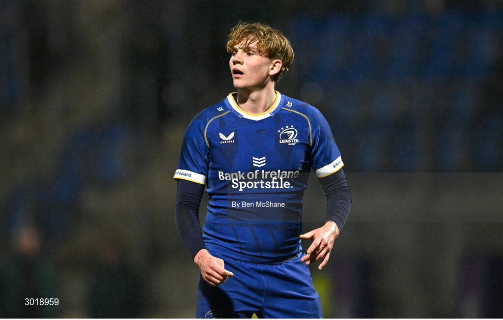 4 January 2025; Caspar Gabriel of Leinster Development XV during the friendly match between Ireland U20 and Leinster Development XV at Energia Park in Dublin. Photo by Ben McShane/Sportsfile