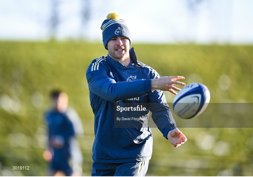 7 January 2025; Jack Crowley during Munster Rugby squad training at the University of Limerick in Limerick. Photo by David Fitzgerald/Sportsfile