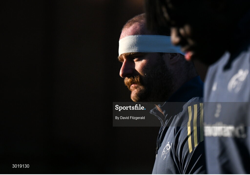7 January 2025; Oli Jager, left, and Seán Edogbo during Munster Rugby squad training at the University of Limerick in Limerick. Photo by David Fitzgerald/Sportsfile