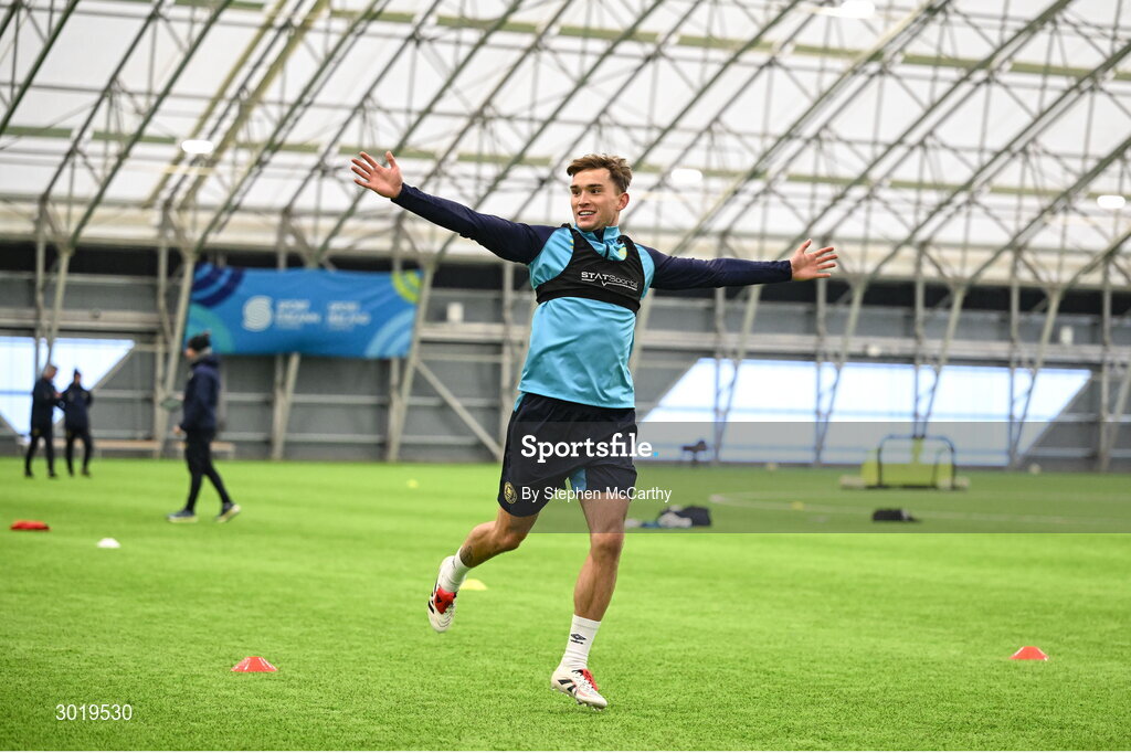 10 January 2025; Anto Breslin during a St Patrick's Athletic pre-season training session at the National Indoor Arena on the Sport Ireland Campus in Dublin. Photo by Stephen McCarthy/Sportsfile