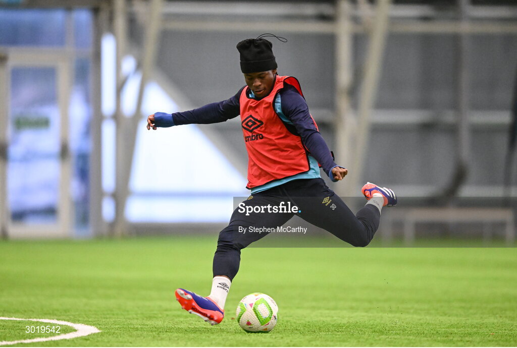10 January 2025; Al-Amin Kazeem during a St Patrick's Athletic pre-season training session at the National Indoor Arena on the Sport Ireland Campus in Dublin. Photo by Stephen McCarthy/Sportsfile