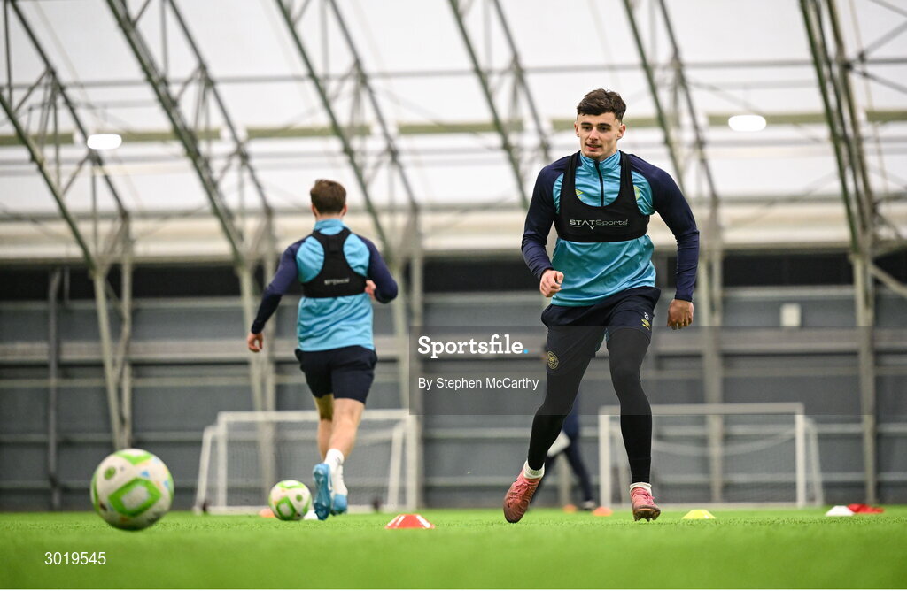 10 January 2025; Simon Power during a St Patrick's Athletic pre-season training session at the National Indoor Arena on the Sport Ireland Campus in Dublin. Photo by Stephen McCarthy/Sportsfile