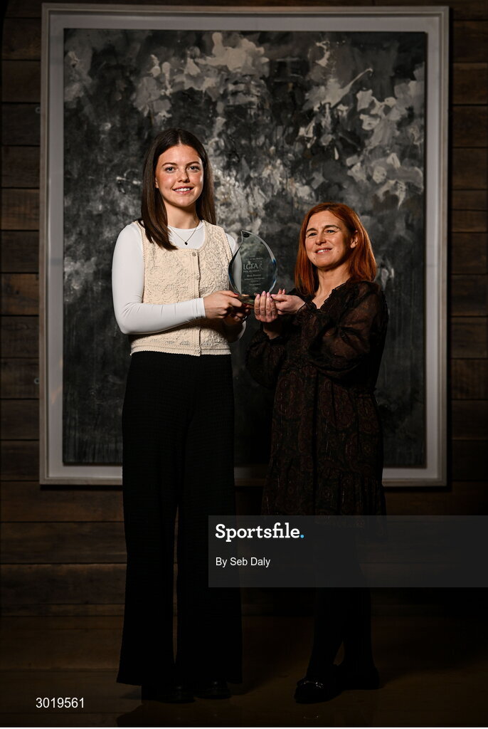 10 January 2025; Eva Noone from Galway club Kilkerrin-Clonberne, left, is presented with The Croke Park Hotel/LGFA Player of the Month award for December 2024 by Edele O’Reilly, Director of Sales and Marketing, The Croke Park Hotel, at The Croke Park Hotel in Jones Road, Dublin. Eva produced an AIB Player of the Match performance, including a scoring haul of 0-3, as Kilkerrin-Clonberne won a fourth successive AIB All-Ireland Senior club title at Croke Park on Saturday December 14. Photo by Seb Daly/Sportsfile