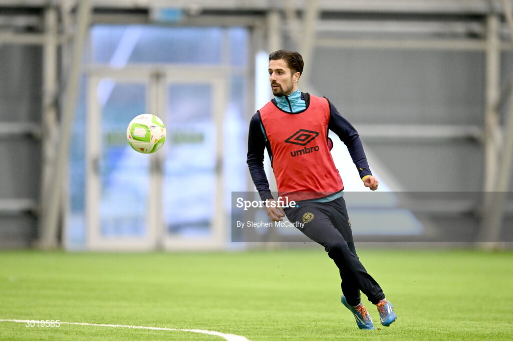 10 January 2025; Zach Elbouzedi during a St Patrick's Athletic pre-season training session at the National Indoor Arena on the Sport Ireland Campus in Dublin. Photo by Stephen McCarthy/Sportsfile