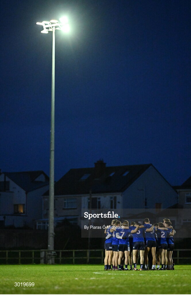 10 January 2025; MTU Kerry players in a huddle before the Electric Ireland Higher Education GAA Sigerson Cup Round 1 match between DCU Dóchas Éireann and MTU Kerry at DCU Sportsgrounds in Dublin. Photo by Piaras Ó Mídheach/Sportsfile