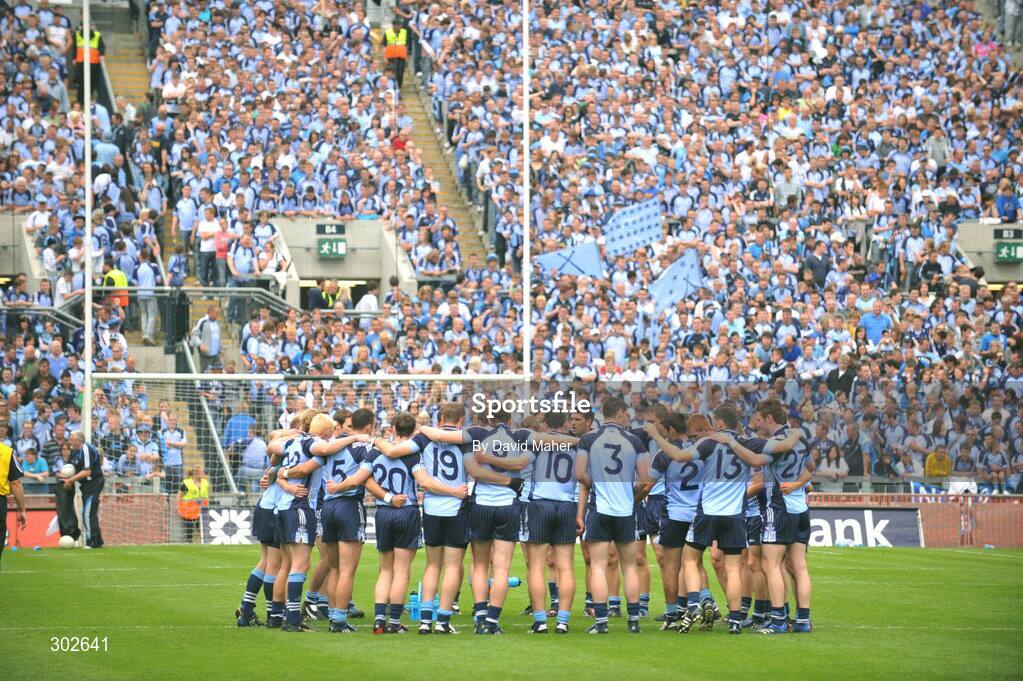 8 June 2008; Dublin players form a huddle before the start of the game. GAA Football Leinster Senior Championship Quarter-Final, Louth v Dublin, Croke Park, Dublin. Picture credit: David Maher / SPORTSFILE