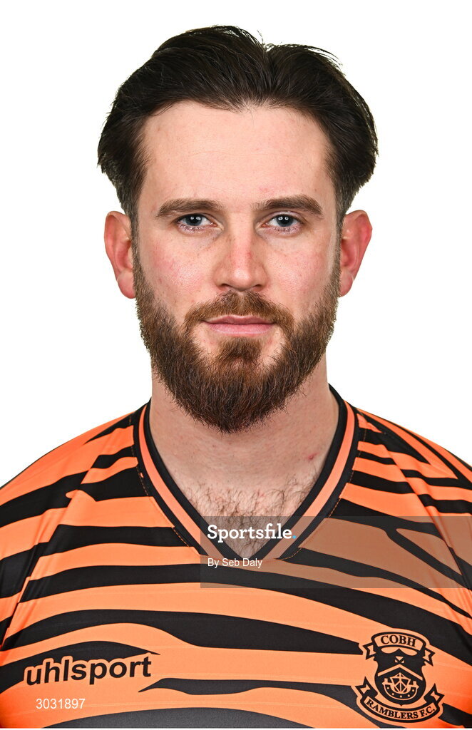 29 January 2025; Goalkeeper Cathal O’Hanlon during a Cobh Ramblers squad portraits session at The Commodore Hotel in Cobh, Cork. Photo by Seb Daly/Sportsfile