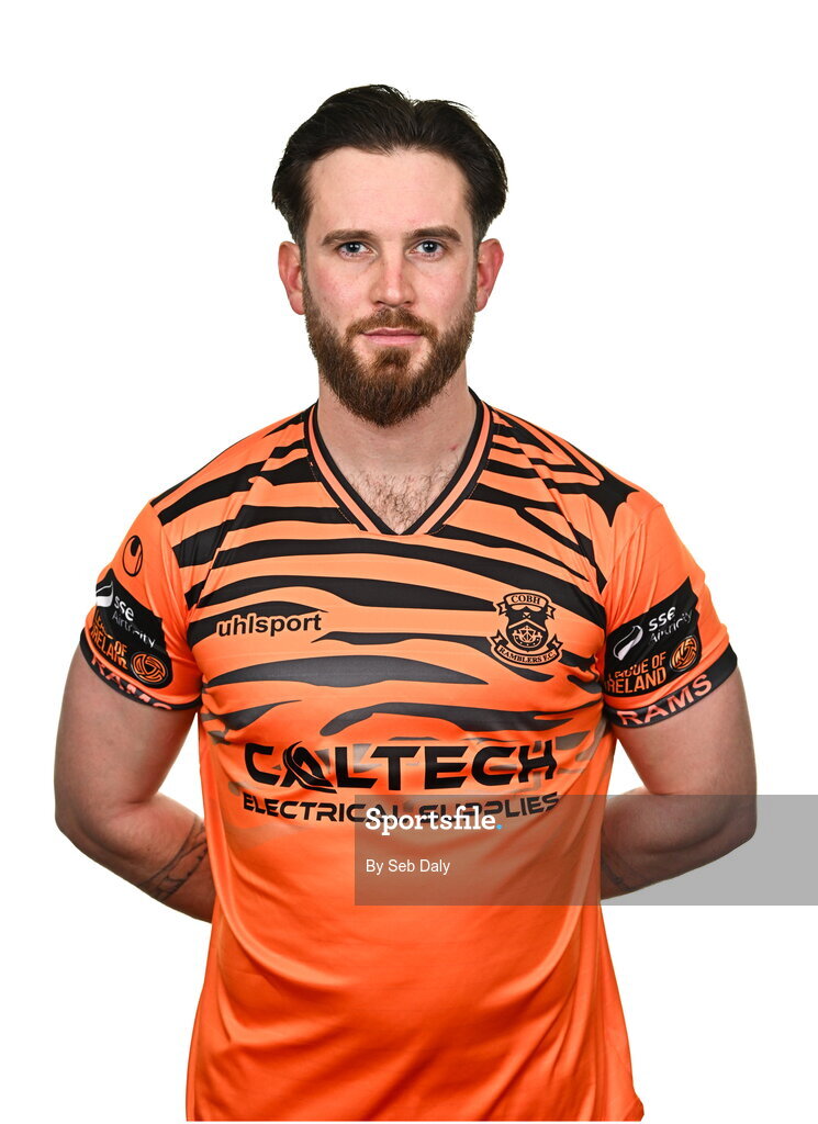 29 January 2025; Goalkeeper Cathal O’Hanlon during a Cobh Ramblers squad portraits session at The Commodore Hotel in Cobh, Cork. Photo by Seb Daly/Sportsfile