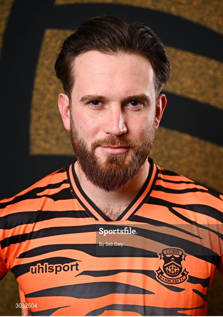29 January 2025; Goalkeeper Cathal O’Hanlon during a Cobh Ramblers squad portraits session at The Commodore Hotel in Cobh, Cork. Photo by Seb Daly/Sportsfile