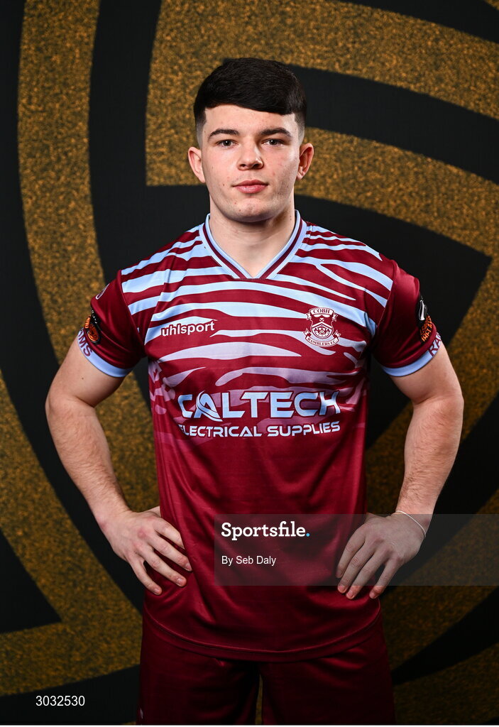 29 January 2025; Luka Le Bervet during a Cobh Ramblers squad portraits session at The Commodore Hotel in Cobh, Cork. Photo by Seb Daly/Sportsfile
