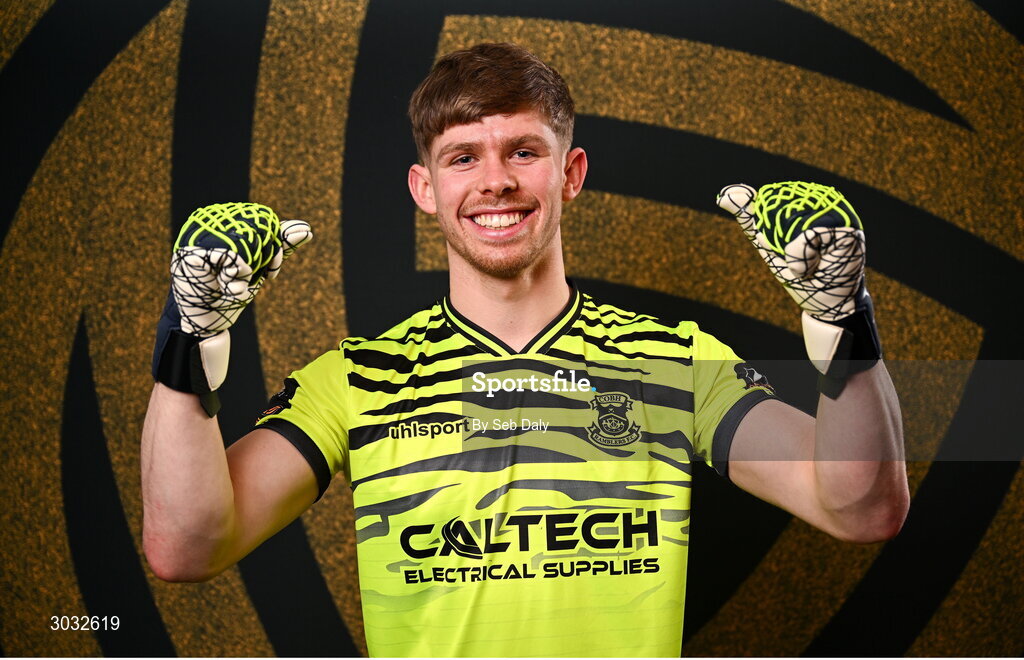 29 January 2025; Goalkeeper Darragh Burke during a Cobh Ramblers squad portraits session at The Commodore Hotel in Cobh, Cork. Photo by Seb Daly/Sportsfile