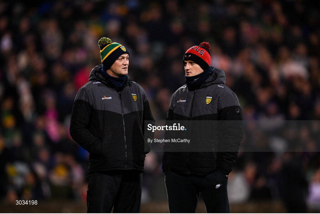 1 February 2025; Donegal's Colm McFadden and Niall O'Donnell before the Allianz Football League Division 1 match between Donegal and Dublin at MacCumhaill Park in Ballybofey, Donegal. Photo by Stephen McCarthy/Sportsfile