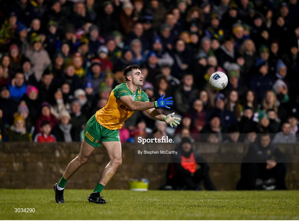 1 February 2025; Caolan McGonagle of Donegal during the Allianz Football League Division 1 match between Donegal and Dublin at MacCumhaill Park in Ballybofey, Donegal. Photo by Stephen McCarthy/Sportsfile