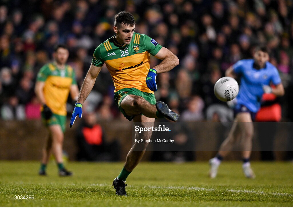 1 February 2025; Caolan McGonagle of Donegal during the Allianz Football League Division 1 match between Donegal and Dublin at MacCumhaill Park in Ballybofey, Donegal. Photo by Stephen McCarthy/Sportsfile