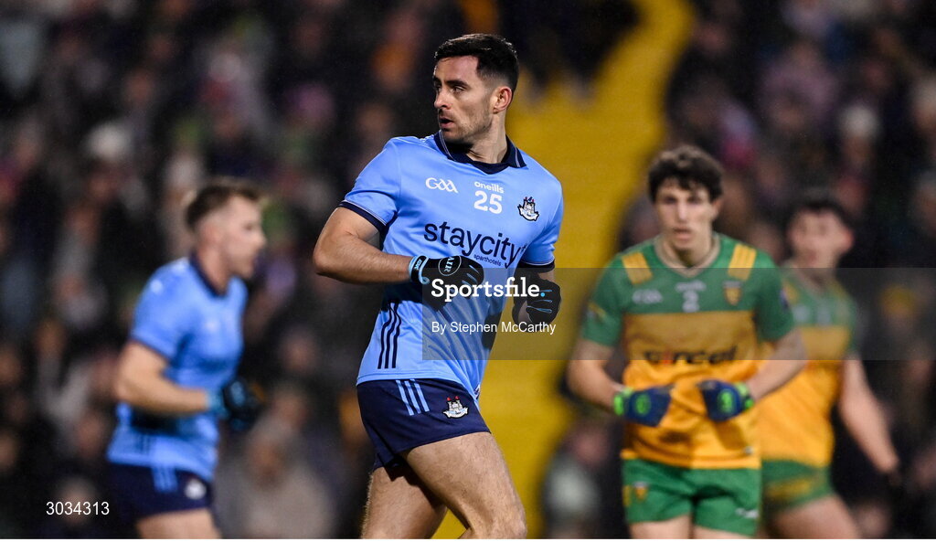 1 February 2025; Niall Scully of Dublin during the Allianz Football League Division 1 match between Donegal and Dublin at MacCumhaill Park in Ballybofey, Donegal. Photo by Stephen McCarthy/Sportsfile