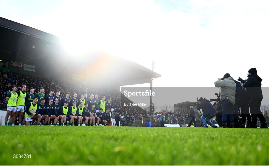 2 February 2025; The Meath team pose for a team photograph before the Allianz Football League Division 2 match between Meath and Cavan at Páirc Tailteann in Navan, Meath. Photo by Tyler Miller/Sportsfile