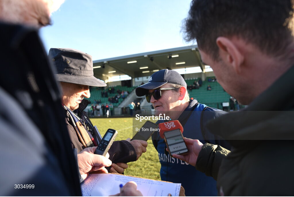 2 February 2025; Limerick manager Jimmy Lee speaks to members of the media after the Allianz Football League Division 4 match between Limerick and Wexford at Mick Neville Park in Rathkeale, Limerick. Photo by Tom Beary/Sportsfile