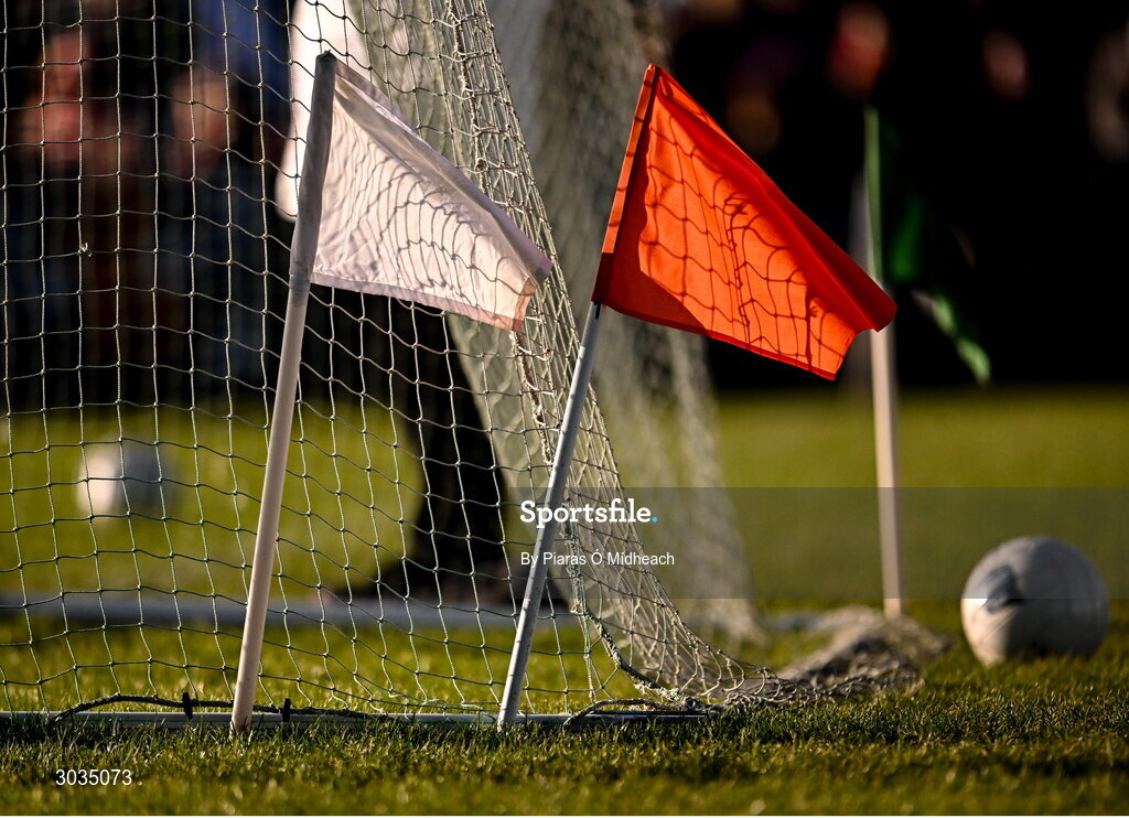 2 February 2025; A genaral view of the white and the orange flags at one of the goalposts during the Allianz Football League Division 1 match between Mayo and Galway at Hastings Insurance MacHale Park in Castlebar, Mayo. Photo by Piaras Ó Mídheach/Sportsfile