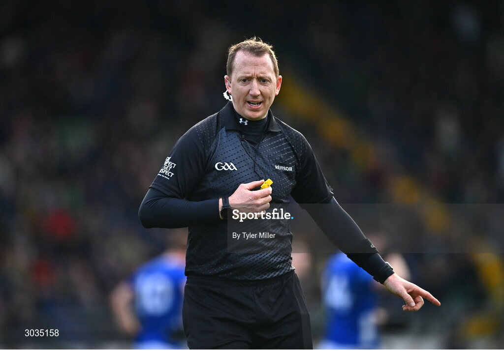 2 February 2025; Referee Seamus Mulhare during the Allianz Football League Division 2 match between Meath and Cavan at Páirc Tailteann in Navan, Meath. Photo by Tyler Miller/Sportsfile